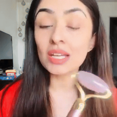 Apply a few drops of facial cream/oil to help the Rose Quartz roller glide smoothly.
